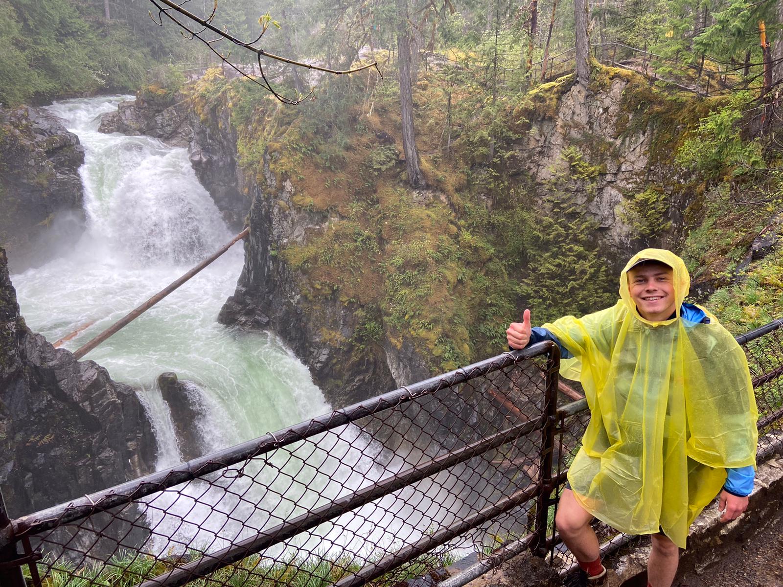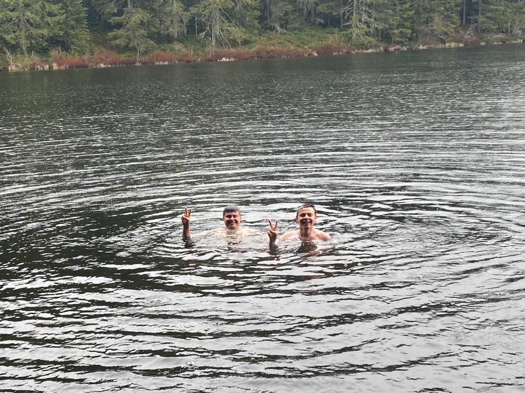 Sunday: We had breakfast in our Hotel (was included) and then we met with Luca again. We went for two small hikes on this day. Why? Two reasons: 1. I have a blister on each foot and it really hurts when I go for a hike and 2. The weather was so shitty. The first hike was about 1,2km long and we saw a really great waterfall and further some nice trails. After this we went for a 5km hike with an elevation of 130m. SO nothing… We walked on railways, jumped into the lake while it was raining and enjoyed the trail. Meantime, I really enjoy to go for a swim in the lakes. Further it was also cool, that Luca joined us. Hope we will see us soon again. If not, we will go for a hike in the „Dammer Berge“😉. We went seperated ways. She went back to Nanaimo and will go to Vancouver soon. Mario and I went on to Port Alberni and we sleep at Bills and Millys place. Two 70 years old folks, who are retired and just enjoy the country live. They made a really nice supper for us and tomorrow morning they will prepare a breakfast. Mario and I really enjoy our time here and we get along really great. I am happy to call myself his travel buddy. If you wanna know something about him, check him out on instagram: @marioschrenk (safe, ohhh man ey @mario)