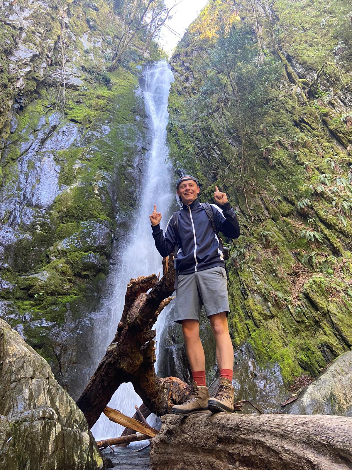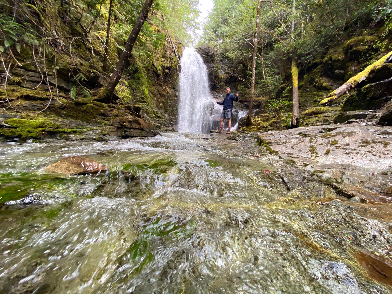 Monday: For us it started early. After we got a very tasty breakfast at Bill’s, we left in the direction of Tofino. Tofino, is a small town, which is very famous for surfing and in the summer and not Covid times very populated by tourists. But before we went to Tofino via Ukke (Uculelet), we went hiking near Port Alberni. A short, not strenuous hike, but it took a long time. The “Weiner Falls and Upper Falls”. A waterfall under which we went swimming, the water was so freezing cold, but we still spent a lot of time to get good photos. After that we drove on to Ucuelet and stopped halfway at a lake and went swimming again. You see, we take every lake and sea and river to go swimming. Uclelet is a very, very small cute town where we had grabbed a snack. After that we enjoyed the drive to Tofino. Along long sandy beaches, the rainforest and many surfers. Arrived in the evening…. checked in… got food and talked a bit with our neighbors, who also come from DE.