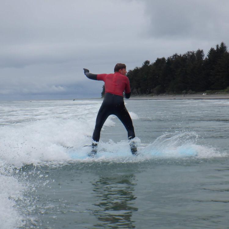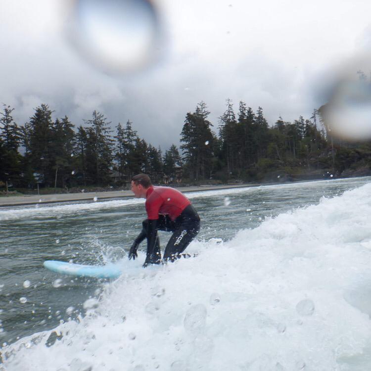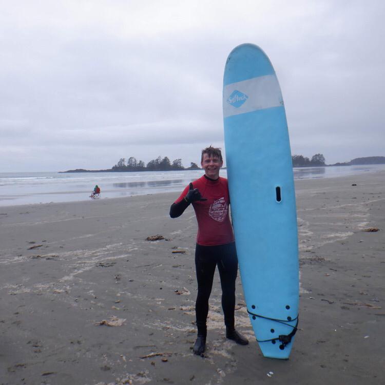 Tuesday: First of two full days in Tofino. The plan for today was: Of course surf!!! We have booked for 1 o’clock a surf lesson over three hours. I’m really looking forward to it. But first, the most important thing of the day: the phone call with mom and dad. It was my dad’s birthday. All, all the best:) Then it was off at 1 o’clock to one of the many beaches in Tofino. Chetserman Beach is a long sandy beach with very nice and also relatively high waves. Surf season is January and February, but also in April you can still get good waves. After a small briefing on the beach we went on the boards. 3 hours lasted the whole fun and for my first time surfing I did very, very well. I surfed at least 10 waves. Surfed three of those waves to the end and stood on my surfboard for over 30 seconds at times. It was endless fun. It was nice and toasty warm in the wetsuits, the sea was rough and with the surfboard under my arm it worked better every time. A huge thanks to Adam, who as our surf instructor, has taught me the surfing super. More of it!